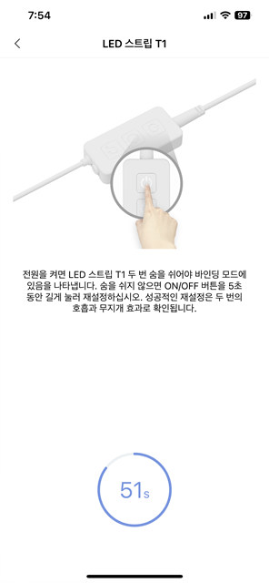 컨트롤러의 전원버튼을 5초정도 누르고 있으면 LED 스트립이 숨쉬기 모드로 들어갑니다.