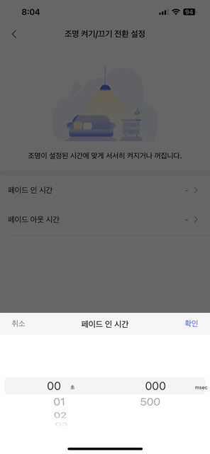 조명이 켜지고 꺼질때 서서히 켜지고 꺼지게 하는 페이드인 / 페이드아웃 설정