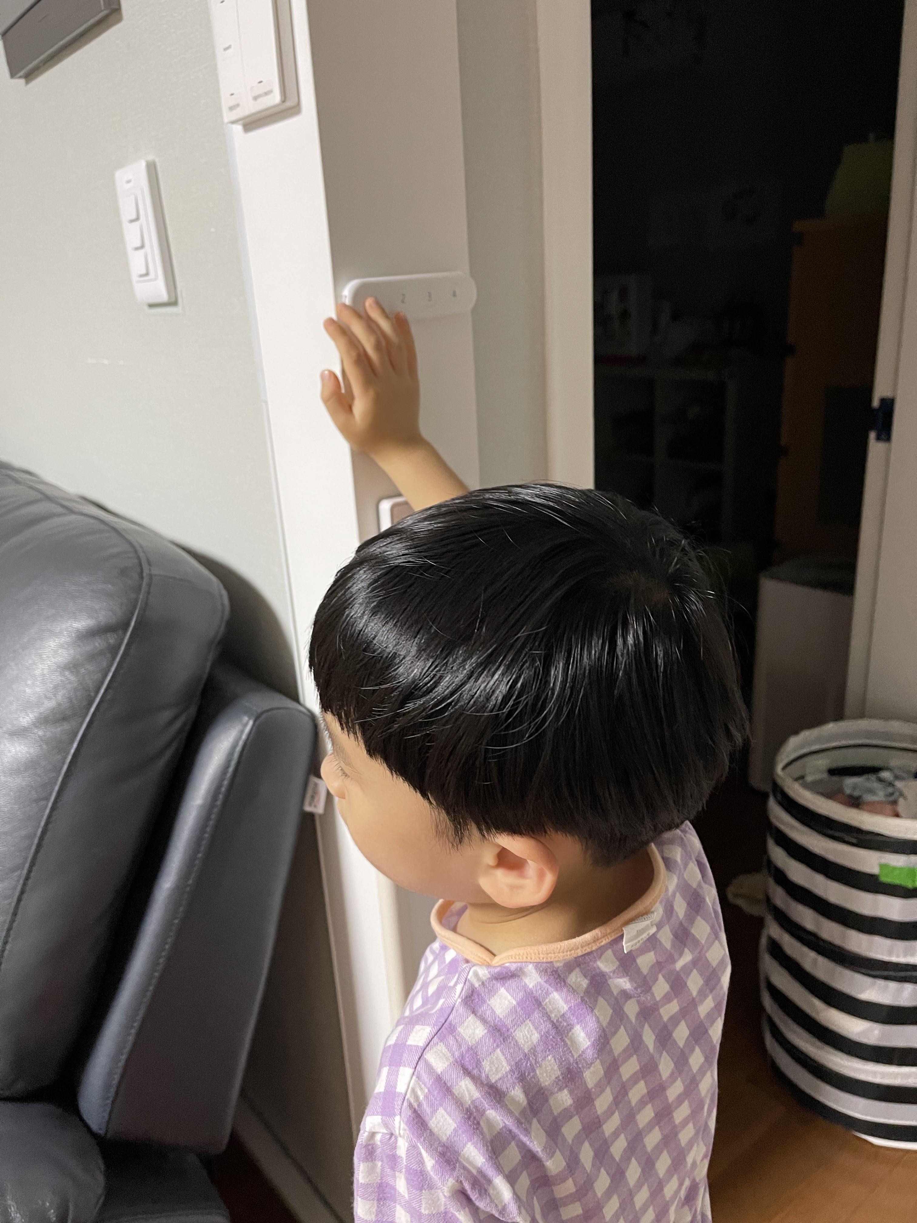 그런다음 아이 손이 닿는 높이에다가 버튼을 붙여두고