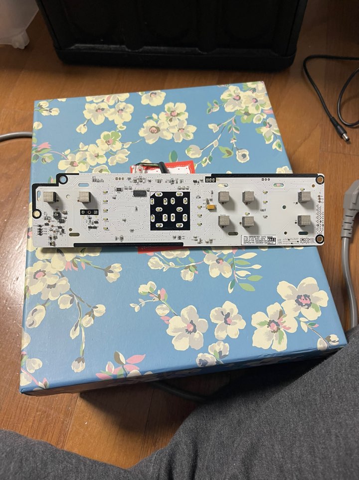 좌측 사진이 기판을 꺼낸 상태이고 가운데 사진을 보면은 뒷면인데 좌측 검은색 동그라미가 문제의 부저다